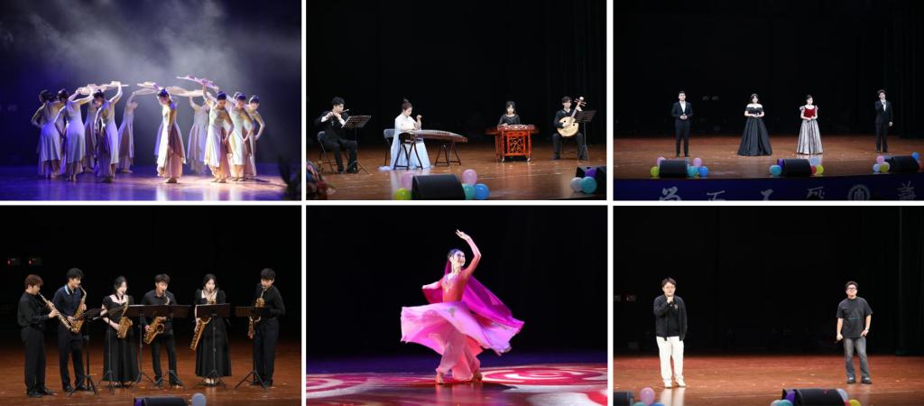 本次活动通过华体会官方网团委视频号进行线上同步直播。晚会主要由“溯风华绽新声”和“承师道向未来”两个篇章组成。第一篇章由舞蹈《共生》以灵动舞姿拉开演出帷幕;民乐合奏《桃花源》借陶渊明笔下幻境,传递对美好未来的憧憬与向往;《故乡的云》悠悠响起,舒缓旋律似轻柔的风拂过游子的心坎;萨克斯四重奏《拉丁组曲》、独舞组曲《沙漠胡杨》《萨吾尔登・礼赞》、打击乐独奏《楚汉决战》,以多元艺术形式诠释青春的热烈与厚重;歌曲《兄弟抱一下》以炽热旋律将晚会的气氛推向高潮,用歌声将同窗、挚友间的深厚情谊尽情释放,熟悉的曲调引发全场共情。