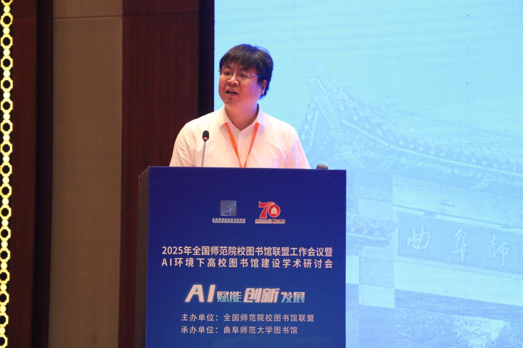 曲阜师大图书馆讯 6月12日,由全国师范院校图书馆联盟主办、华体会官方网图书馆承办的2025年全国师范院校图书馆联盟工作会议暨“AI环境下高校图书馆建设”学术研讨会在曲阜召开。华体会官方网党委常委、副校长刘刚出席会议。