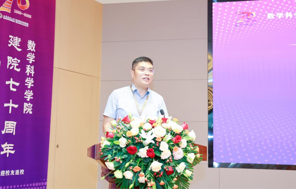来宾代表麻希南教授在致辞中回顾了多次到访学院的经历,高度称赞学院的人才培养质量,其身边的曲园数学校友普遍学风朴实、基础扎实、热爱专业。他充分肯定学院培养出包括中国科学院院士在内的大批优秀人才,期望学院以七十周年院庆为新起点,坚持高质量科研,聚焦省属高校拔尖人才培养,通过内涵式发展赢得社会声誉,为教育强国建设贡献力量。