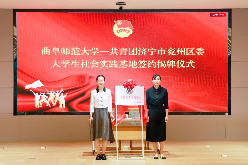 刘涛为西部计划志愿者和社会实践代表队授旗。孙祥广宣读了《2025年大学生暑期“三下乡”社会实践暨“教育强国”百千万专项活动实施方案》。共青团济宁市委副书记孙菲发布了2025年济宁市大学生暑期社会实践岗位。团委副书记张颖与共青团济宁市兖州区委书记刘寒共同签署《共建大学生社会实践基地合作协议》,并为“大学生社会实践基地”揭牌。