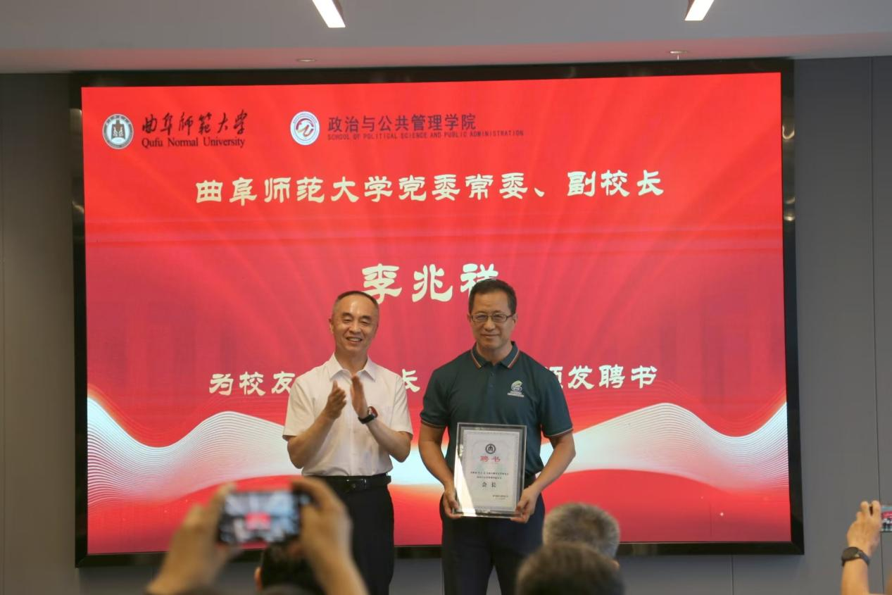 李兆祥代表学校向政治与公共管理学院校友分会的成立表示祝贺,向远道而来的各位校友表示欢迎。他指出,政治与公共管理学院六十五载风雨兼程,砥砺深耕初心如磐,如今取得累累硕果离不开各地校友的支持。他对校友分会、学院提出殷切期望,希望校友分会成为情感联络的平台、事业发展的平台、服务社会的平台;希望学院做好终身学习支持服务、资源精准对接服务、产学研协同发展服务;希望校友们当好学院发展的“智囊团”、学弟学妹的“引路人”、母校形象的“代言人”。校友分会必将成为连接校友、学院与社会的坚实纽带,书写辉煌灿烂的未来。李兆祥还分享了他和政治与公共管理学院师生之间的小故事,现场气氛温馨而热烈。
