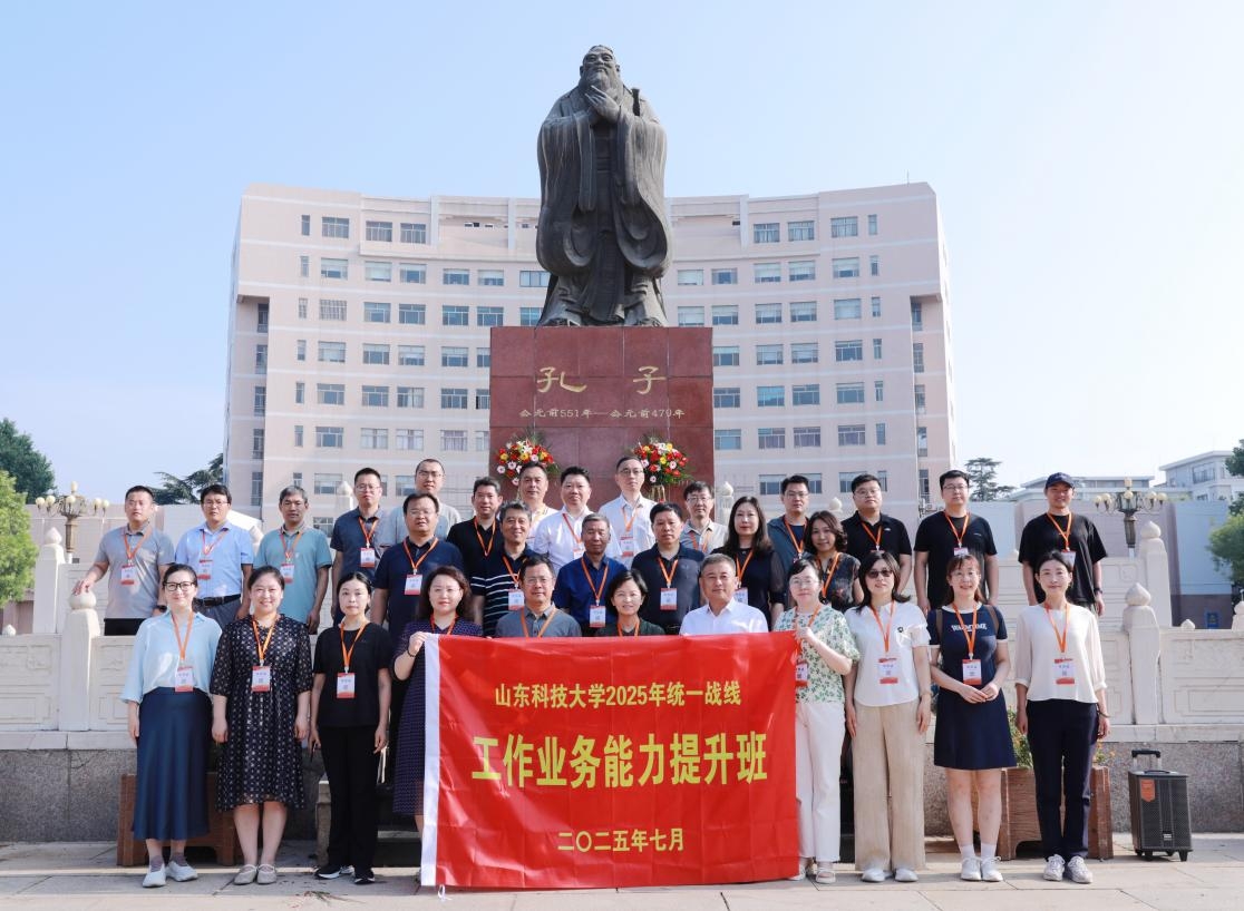 优秀传统文化教育中心讯 7月16日-19日,山东科技大学2025年统一战线工作业务能力提升培训班在华体会官方网举行。7月16日,曲阜师大党委常委、副校长李兆祥会见山东科技大学党委副书记、统战部部长郭益灵一行并座谈。