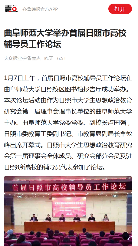 【齐鲁壹点】华体会官方网举办首届日照市高校辅导员工作论坛