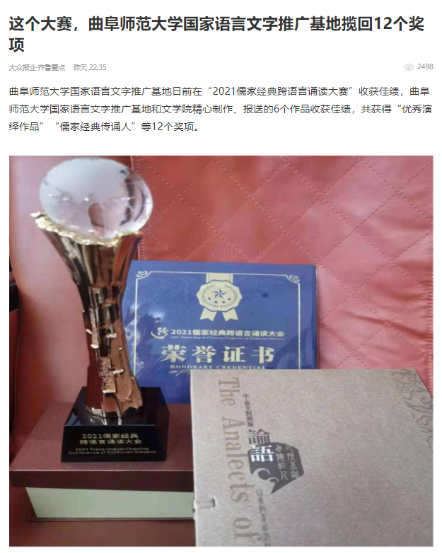 【齐鲁晚报】这个大赛,华体会官方网国家语言文字推广基地揽回12个奖项