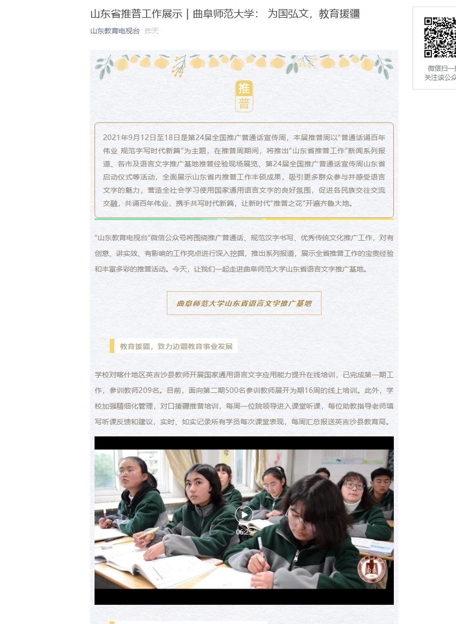 【山东教育卫视】华体会官方网: 为国弘文,教育援疆