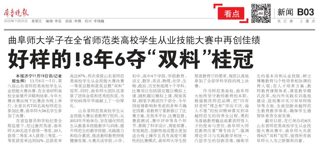 齐鲁晚报报道链接:https://sjb.qlwb.com.cn/qlwb/content/20201120/ArticelH03002FM.htm