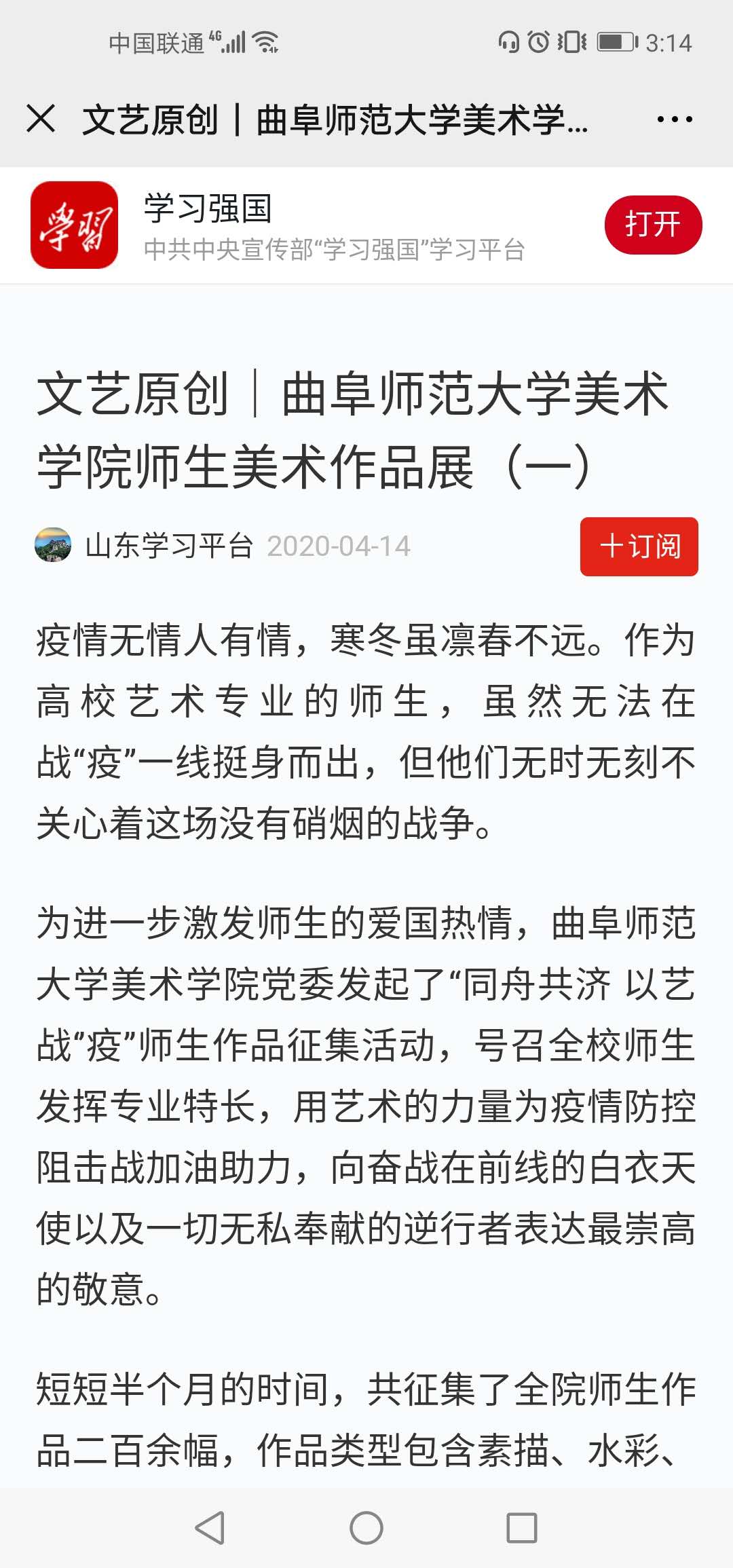 文艺原创|华体会官方网美术学院师生美术作品展(四)https://article.xuexi.cn/articles/index.html?art_id=13109507262751964049&t=1587096614970&study_style_id=feeds_default&showmenu=false&pid=&ptype=-1&source=share&share_to=wx_single&from=timeline