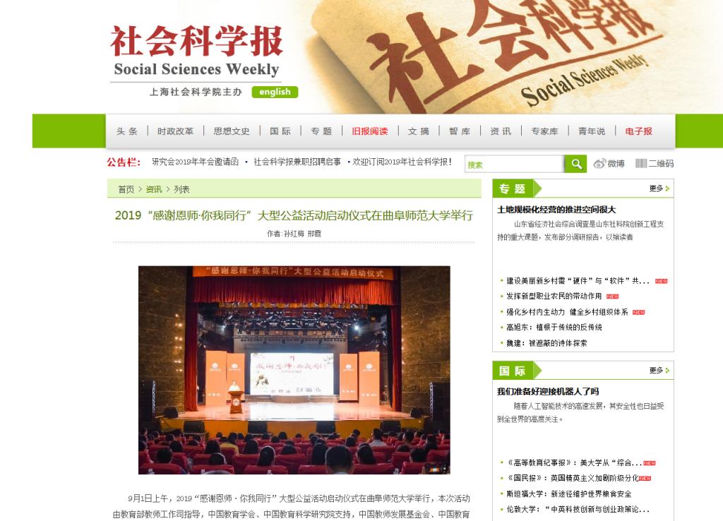 社会科学报:2019“感谢恩师·你我同行”大型公益活动启动仪式在华体会官方网举行