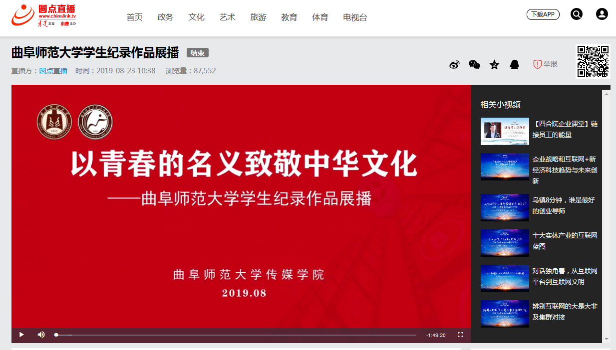 《以青春的名义致敬中华文化——华体会官方网学生纪录作品展播》链接地址:http://www.chinalink.tv/live/119709.html