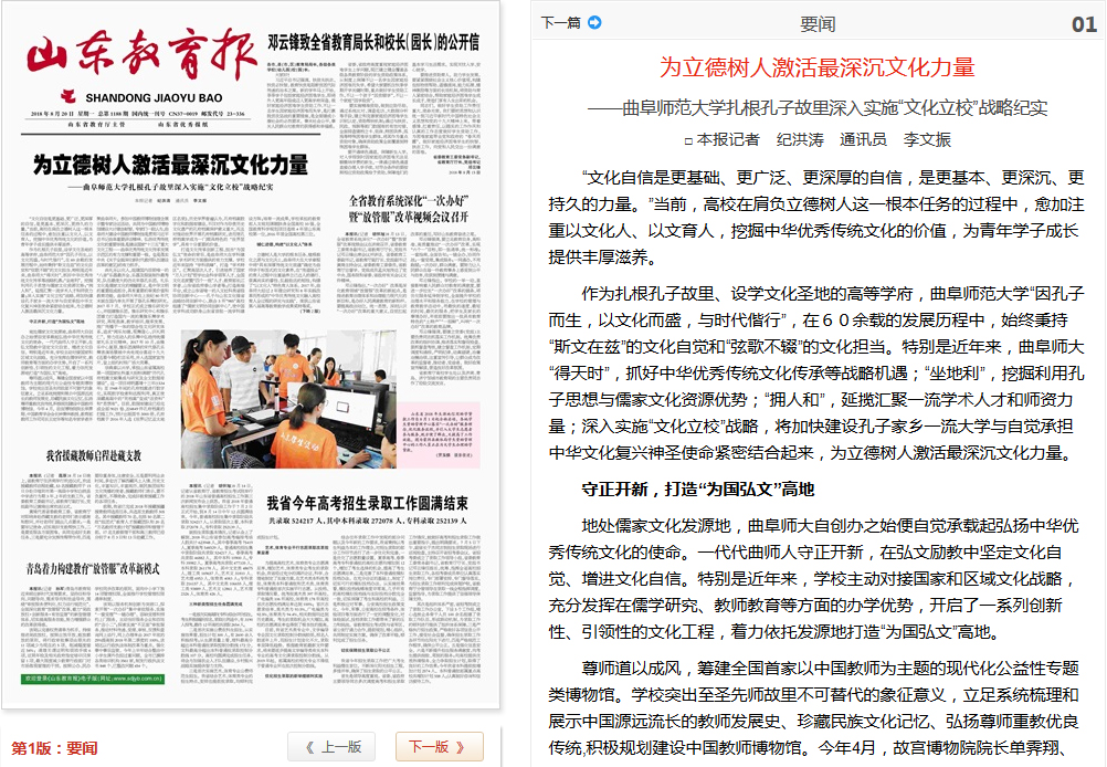 山东教育报:华体会官方网扎根孔子故里深入实施“华体会官方网”战略纪实