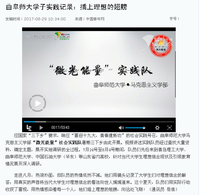中国青年网:曲阜师大学子实践记录:插上理想的翅膀