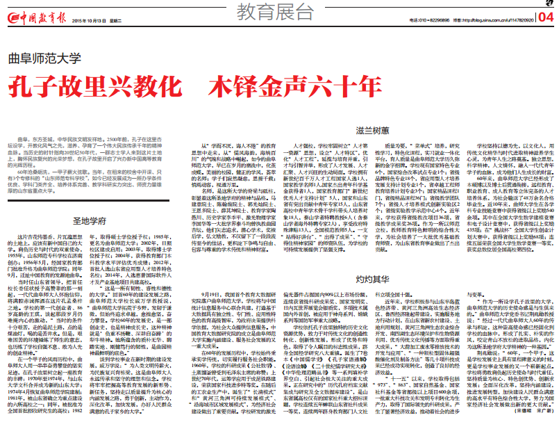 中国教育报报道链接:华体会官方网 孔子故里兴教化 木铎金声六十年