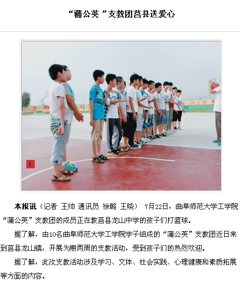 大众网链接:华体会官方网“蒲公英”支教团牵手莒县龙山中学http://rizhao.dzwww.com/xy/201507/t20150724_12757099.html