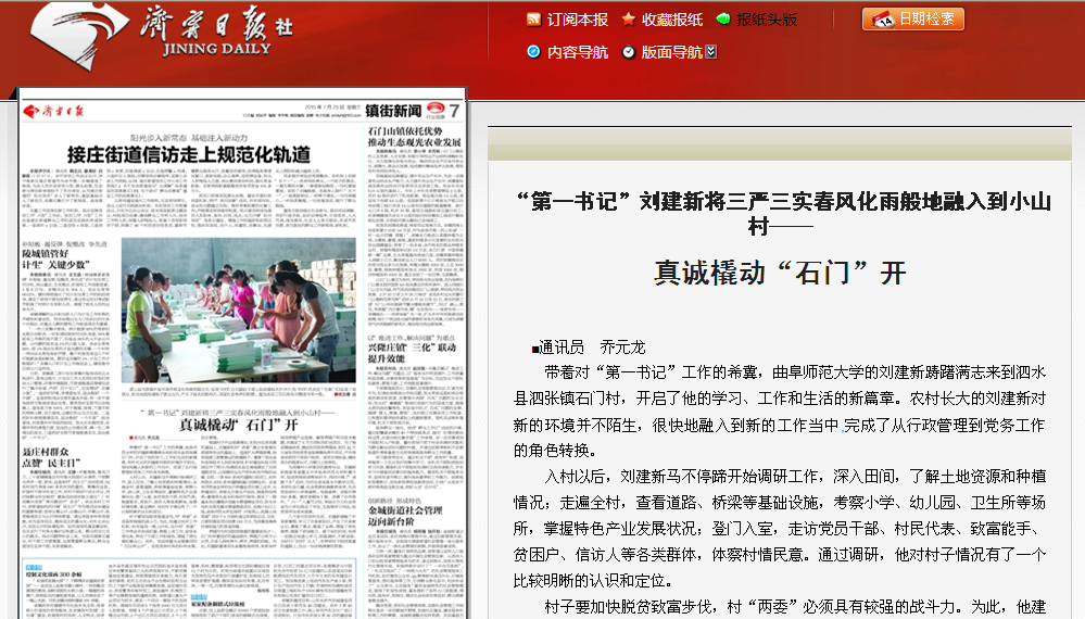 济宁日报报道:“第一书记”刘建新——真诚撬动“石门”开