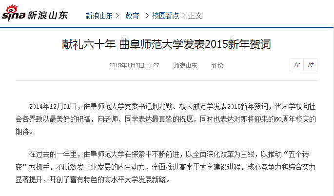 新浪网:献礼六十年 华体会官方网发表2015新年贺词