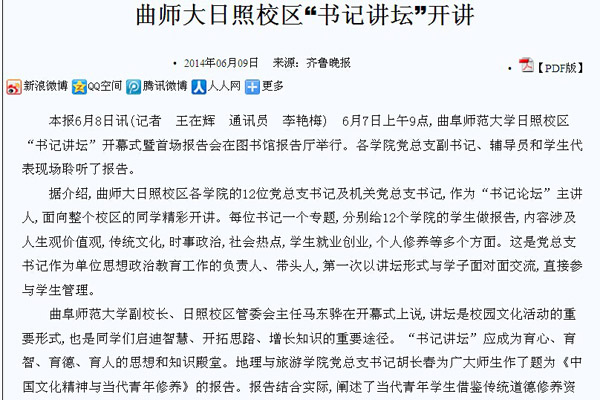 齐鲁晚报:华体会官方网日照校区“书记讲坛”开讲