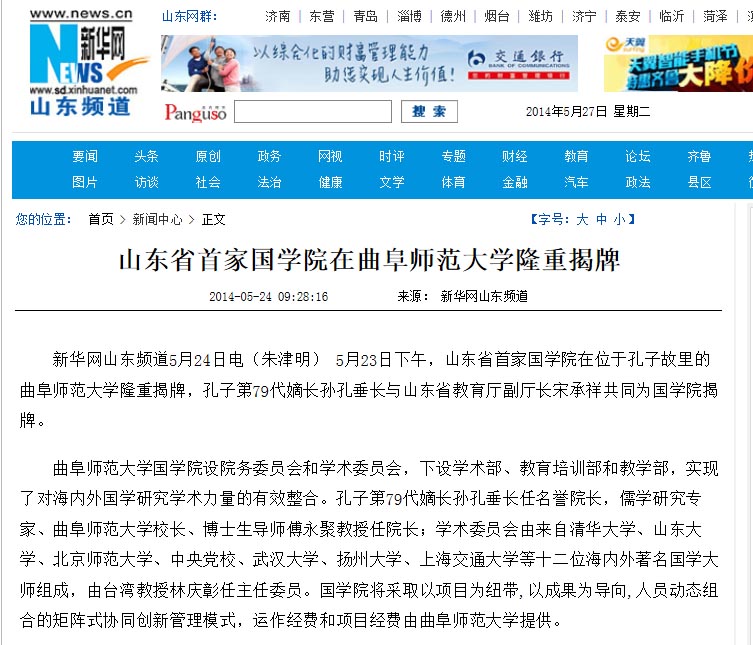 新华网:山东省首家国学院在华体会官方网隆重揭牌