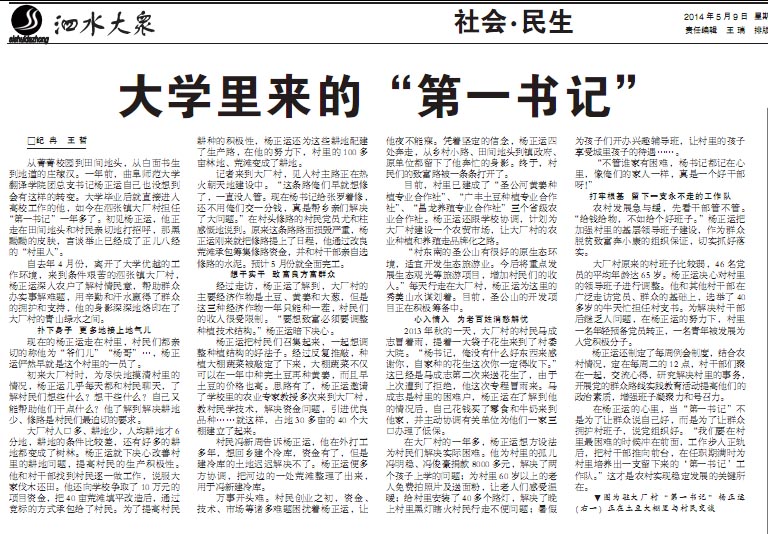 泗水大众:大学里来的“第一书记”