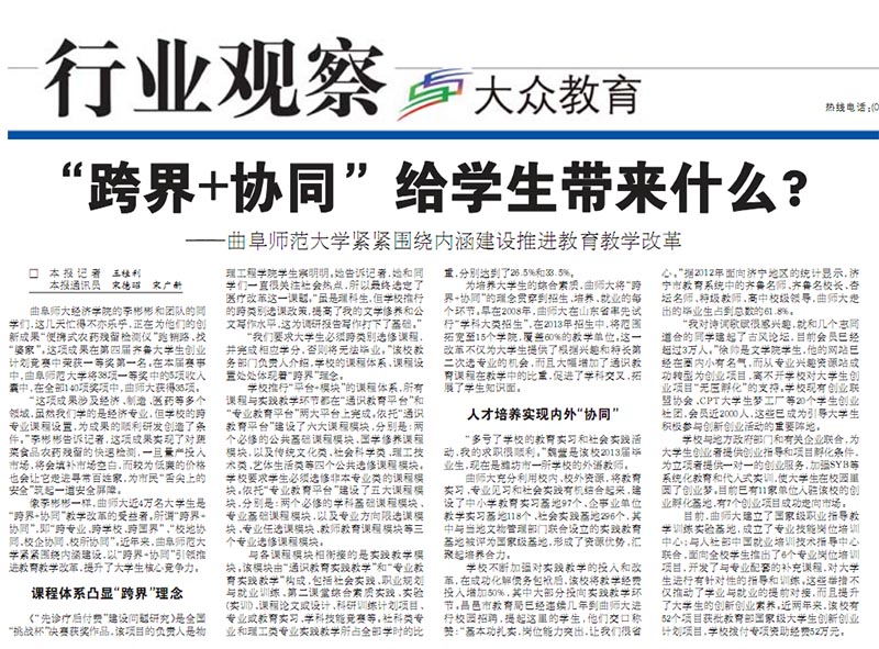大众日报:“跨界+协同”给学生带来什么?——华体会官方网紧紧围绕内涵建设推进教育教学改革