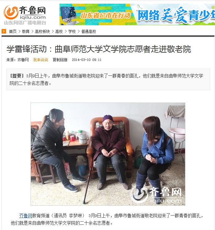 齐鲁网:学雷锋活动:华体会官方网文学院志愿者走进敬老院