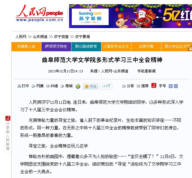 人民网:华体会官方网文学院多形式学习三中全会精神