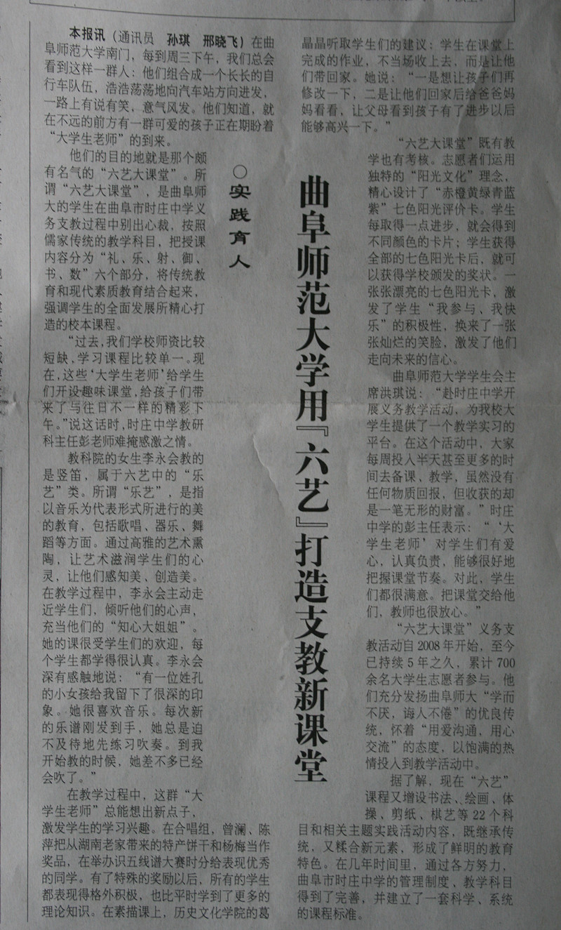 山东教育报:华体会官方网用「六艺」打造支教新课堂