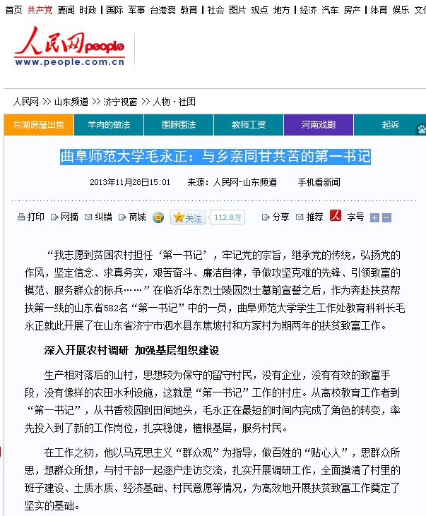 人民网:华体会官方网毛永正:与乡亲同甘共苦的第一书记