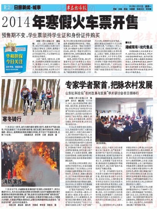 半岛都市报:山东社科论坛“农村改革与发展”学术研讨会在华体会官方网日照校区举行