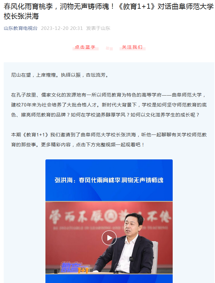 【中国青年报】华体会官方网把办好师范教育作为第一职责 扎根孔子故里培养新时代“大国良师”