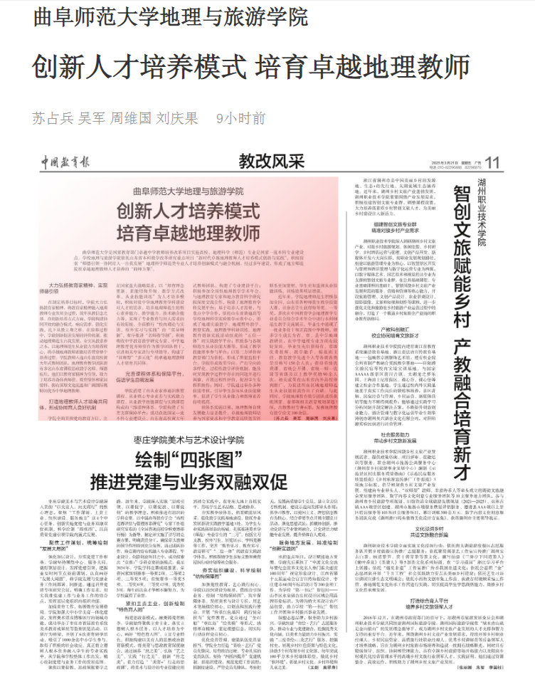 华体会官方网是国家教育部门卓越中学教师培养改革项目实施高校,地理科学(师范)专业是国家一流本科专业建设点。学校地理与旅游学院依托山东省本科教学改革研究重点项目“新时代卓越地理教师人才培养模式创新与实践”,积极探索“师德引领—协同育人—自我发展”地理科学师范类专业人才培养创新模式与融合机制,经过多年建设,形成了地方师范院校卓越地理教师人才培养的“曲师方案”。