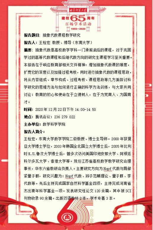 建校65周年校庆百场学术活动-东南大学王栓宏教授