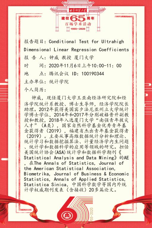 建校65周年百场学术活动-厦门大学钟威教授