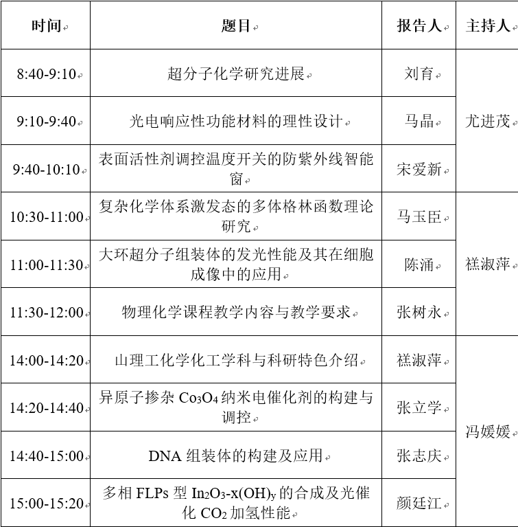 由山东化学化工学会物理化学专业委员会与胶体与界面化学专业委员会联合主办,华体会官方网化学与化工学院承办的“2019年山东化学化工学会物理化学专业委员会年会及胶体与界面化学专业委员会年会”将于2019年9月20-22日在曲阜举办。
