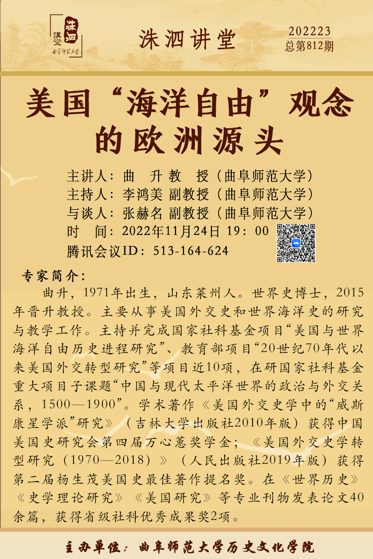 洙泗讲堂预告|曲升:美国“海洋自由”观念的欧洲源头