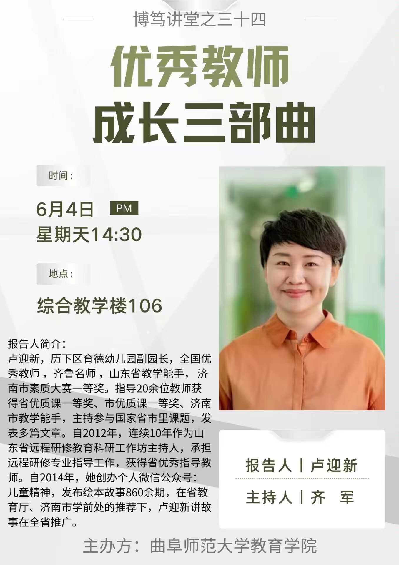 博笃讲堂预告| 卢迎新:优秀教师成长三部曲