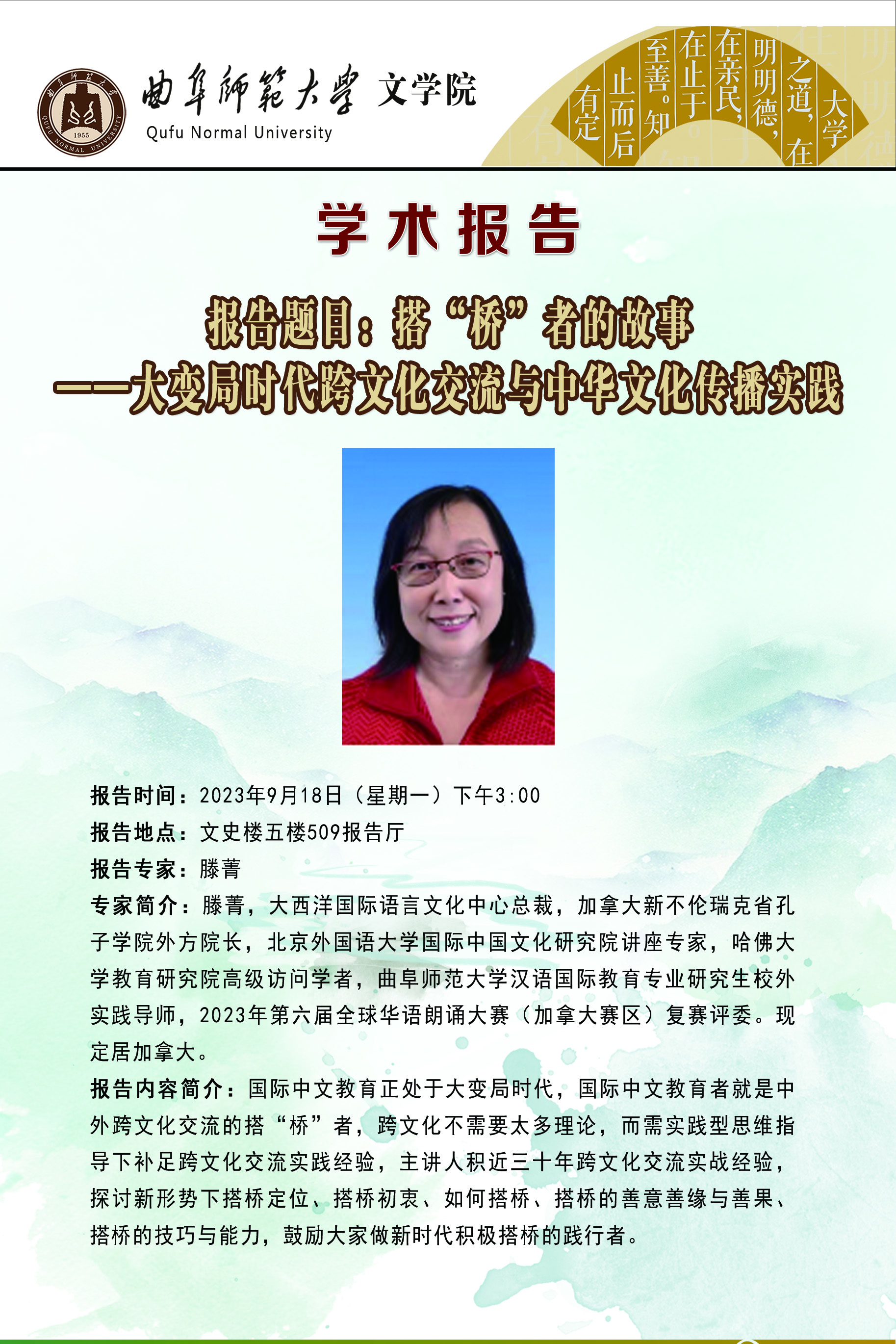 专家简介:滕菁,大西洋国际语言文化中心总裁,北京外国语大学国际中国文化研究院讲座专家,哈佛大学教育研究院高级访问学者,华体会官方网汉语国际教育专业研究生校外实践导师,2023年第六届全球华语朗诵大赛(加拿大赛区)复赛评委。现定居加拿大。
