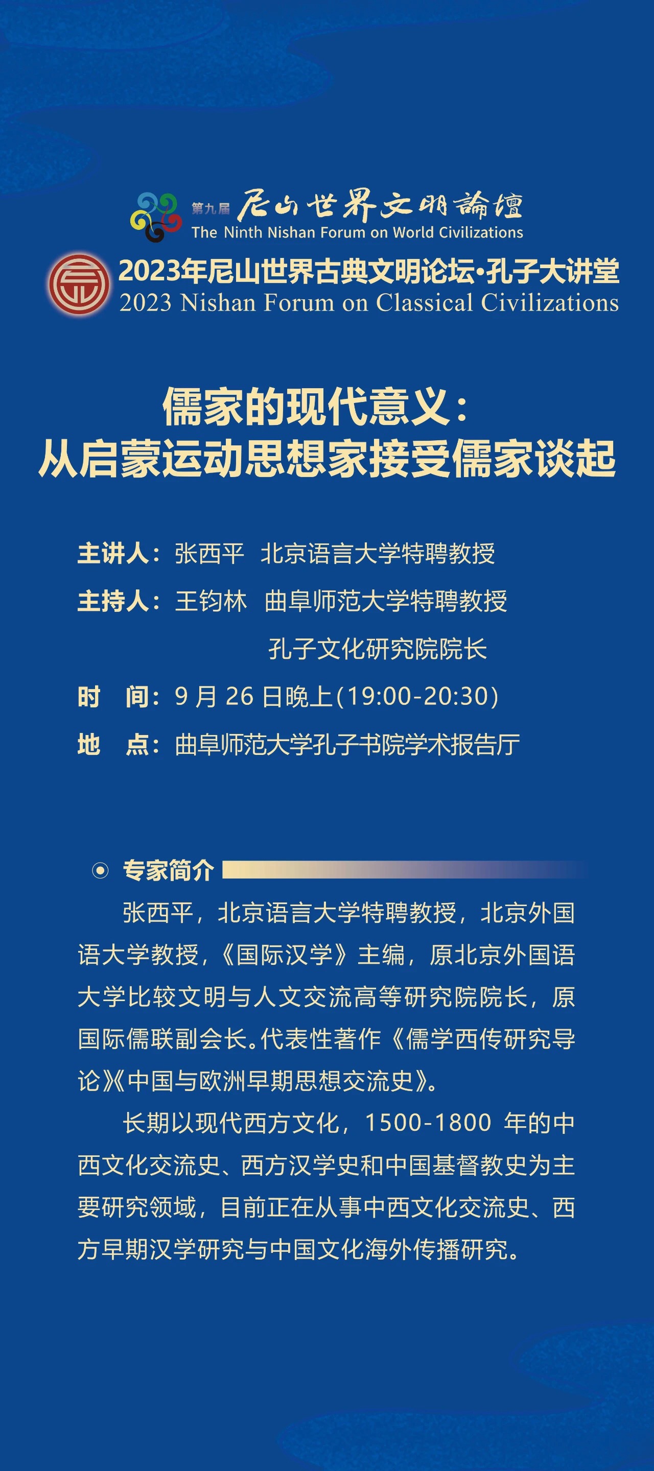 孔子大讲堂预告| 张西平:《儒家的现代意义:从启蒙运动思想家接受儒家谈起》