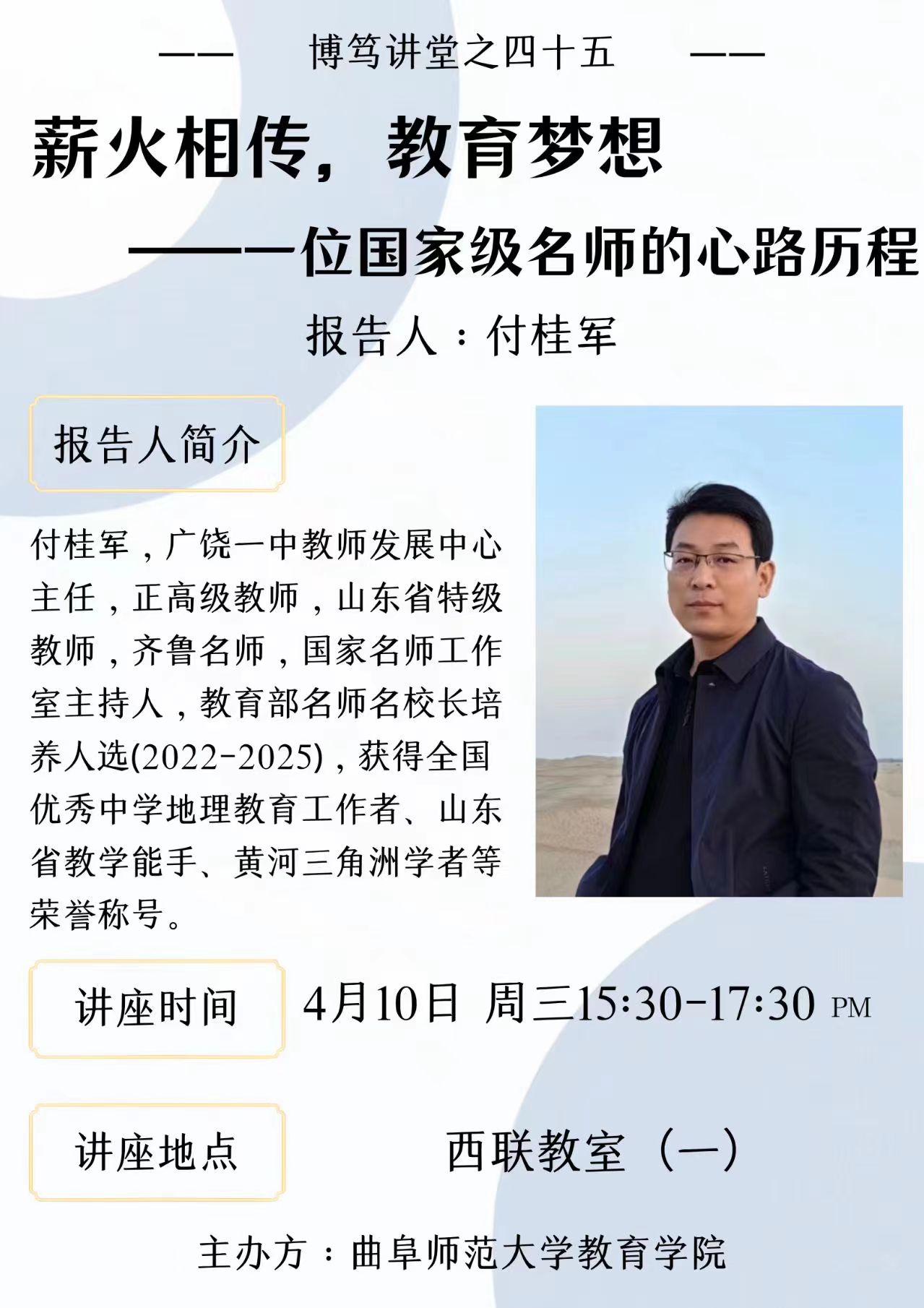 博笃讲堂预告:薪火相传,教育梦想——一位国家级名师的心路历程
