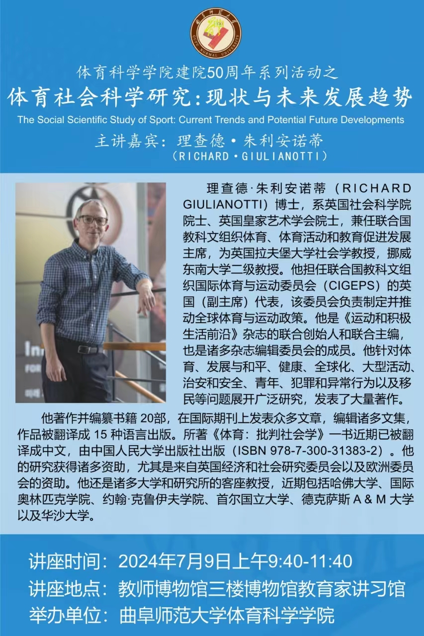体育科学学院建院50周年学术报告预告| 体育社会科学研究:现状与未来发展趋势