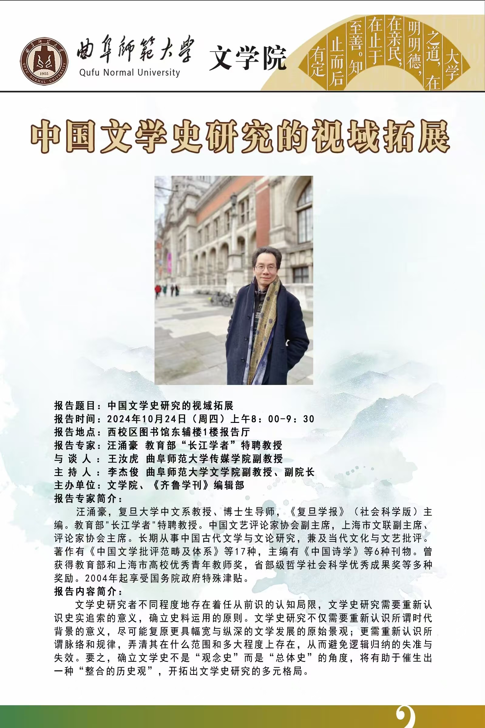 文学院学术报告预告:中国文学史研究的视域拓展