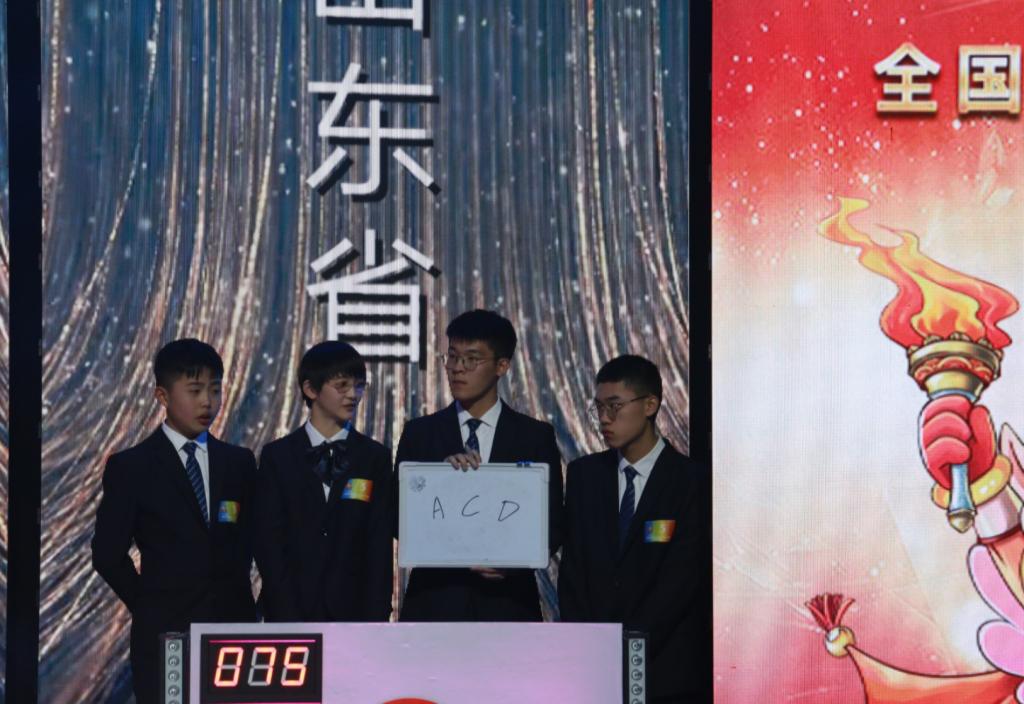 小组赛中,我省四位选手沉着冷静,在前四轮小学组单选题、初中组判断题、高中组逻辑题以及高校组多选题环节中一分未失;在抢答题环节,多次抢得答题先机,始终处于领先位置;在最后一轮“你话我猜”环节中,四位选手配合默契,顺利进入全国总决赛。总决赛中,我省代表队根据既定方案,最终斩获全国亚军。