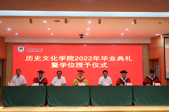院长吴佩林代表学院向毕业生们送上祝贺与祝愿。他表示,2022届毕业生们在学习科研、创新创业、社会实践等各个方面取得了优异成绩。他勉励毕业生们志存高远、立身行道,铭记“学而不厌、诲人不倦”校训和“博学于文,行己有耻”的院训精神,以曲园人特有的德性、睿性、韧性,将志存高远贯穿于务实笃行中,将雄心壮志落实到脚踏实地上,在驰而不息的奋斗中成就更绚丽的人生。