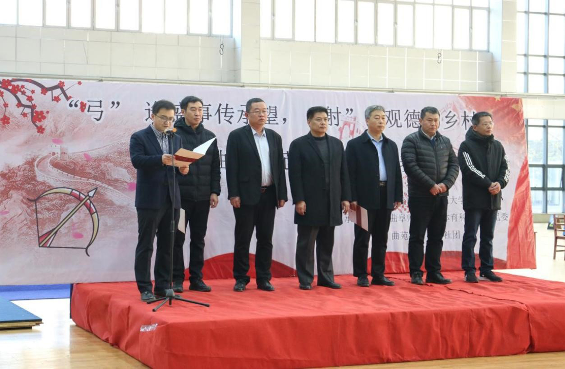 曲阜师大新闻中心讯 为激发同学们对传统射艺文化的兴趣,挖掘射艺的历史渊源,进而增强同学们对乡村文化的了解,促进乡村文化赓续发展,12月4日,“弓”逢盛世传承望,“射”以观德助乡村——华体会官方网射艺比赛在体育科学学院篮球馆举办。本次比赛由体育科学学院承办,团委书记孔轶众,学生工作处副处长毛永正,体育学部党委书记刘敏,体育学部主任、体育科学学院院长姜付高,体育学部党委副书记马振华,体育科学学院副院长伊超,射艺指导教师刘建国等现场指导。体育学部党委副书记马振华主持本次比赛开幕式。
