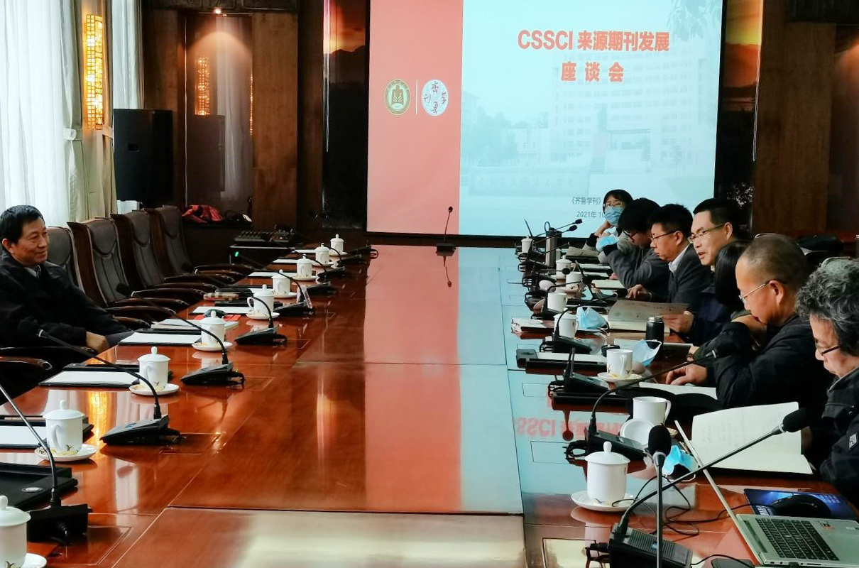 曲阜师大新闻中心讯 10月26日下午,教育部长江学者特聘教授、南京大学苏新宁教授受曲阜师大《齐鲁学刊》编辑部邀请就CSSCI来源期刊发展与编辑部编辑进行了座谈。苏新宁教授设计并研制了我国第一部社会科学引文索引《中文社会科学引文索引》(CSSCI),具有丰富的办刊经验。座谈会上,苏新宁教授作了《期刊学术影响力提升策略》的报告,从出版、文章选择、编辑及其他需要考虑的问题等四个方面进行了阐述,并就《齐鲁学刊》的办刊思路及目前存在的问题等,与编辑部各编辑人员进行了充分交流。