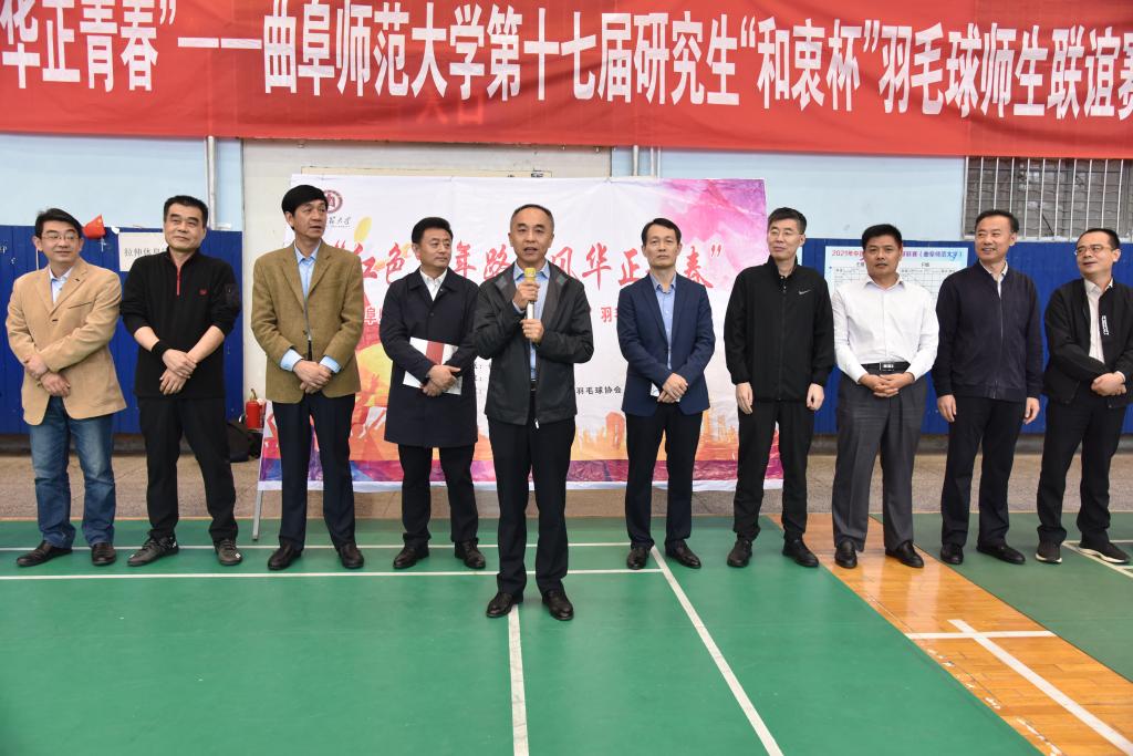 曲阜师大新闻中心讯 在建党百年之际,为贯彻落实新时代青年“德、智、体、美、劳”全面发展的教育方针,激发学校师生的运动热情,促进师生之间、同学之间的交流协作,提高师生的身体素质和竞技水平,10月8日至10日,“红色百年路,风华正青春”——华体会官方网第十七届研究生“和衷杯”羽毛球师生联谊赛在曲阜和日照两校区同时举办。党委副书记扈庆学, 党委常委、副校长李兆祥,党委常委、宣传部部长张隆海出席活动,相关部处及学院负责人参加了活动。