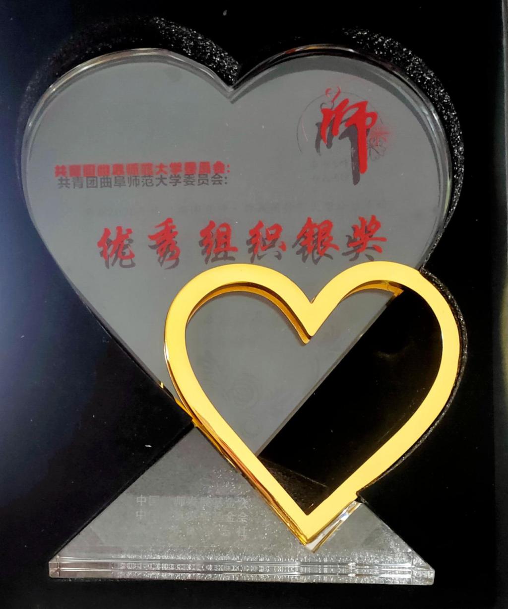 曲阜师大新闻中心讯  在第37个教师节来临之际,由中国教师发展基金会、中国教育发展基金会、教学考试杂志社及中国教育电视台联合举办的2020年度“感谢恩师·你我同行”大型公益活动圆满落下帷幕。我校团委在此次活动中荣获“优秀组织银奖”。