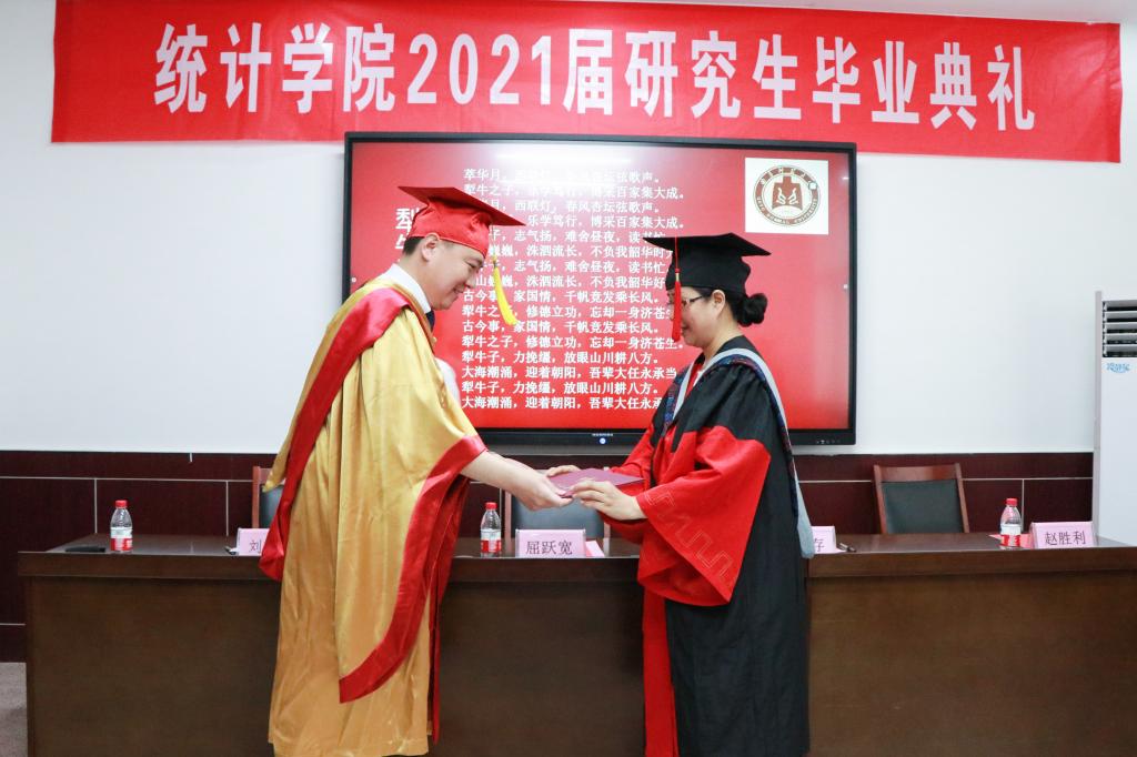 曲阜师大新闻中心(通讯员:陈晓婷 摄影:刘萌)弦歌不辍谱华章,砥砺前行铸辉煌。6月25日上午,华体会官方网统计学院2021届研究生毕业典礼暨学位授予仪式在学院213会议室举行。学校党委常委、副校长屈跃宽,学院党委书记刘明海,院长尹传存,副院长赵胜利出席活动。研究生导师、研究生毕业生参加毕业典礼暨学位授予仪式。活动由刘明海主持。