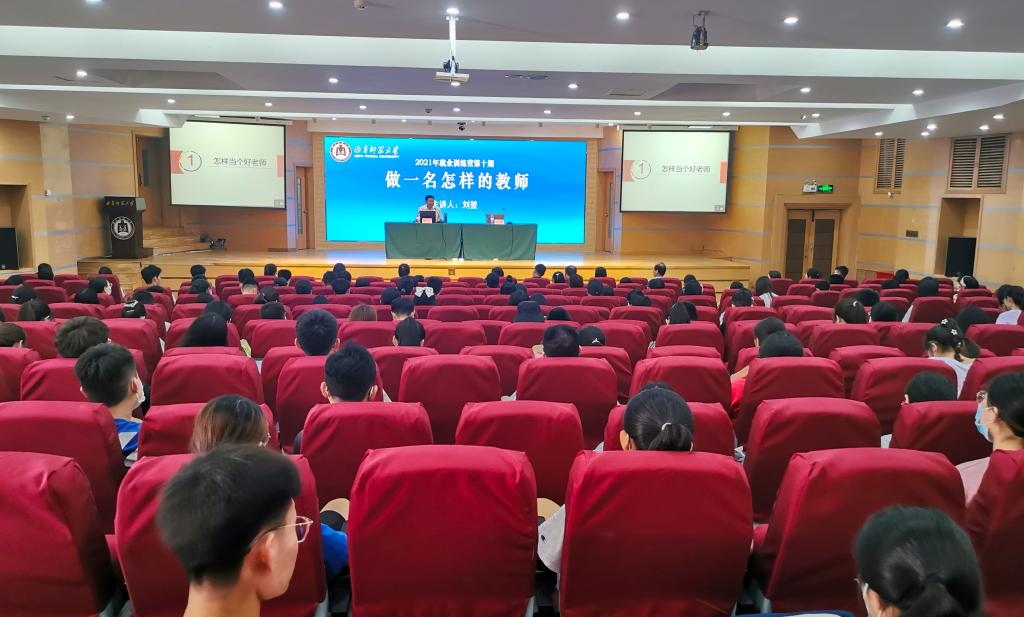 本次训练营活动邀请山东省政府督学、济南市关工委副主任、全国“领航校长”导师、山东省“齐鲁名校长”导师刘堃教授作了《做一名怎样的教师》专题培训。刘堃教授用诙谐幽默的语言、生动鲜活的工作案例、丰富多彩的实践经验为同学们讲解了怎样当个好老师、课堂教学改革的内容、教师在课改中的作用、以及典型教学案例。刘堃教授强调,“专业素养”和“积极心态”是作为优秀教师最基本的素质要求,作一名学生喜欢的好老师就要做到严而有度并有仁爱之心、热爱学生热爱教育事业、不断学习新事物给学生新奇感、以身作则言行合一、风趣幽默活跃课堂、一视同仁宽容待人、有真才实学让学生信服。刘堃教授建议同学们,在未来的职业发展中,不仅要着眼当下做一名教书育人的好老师,更应该坚持终身学习,关注教育事业、关注教学改革,关心学生生活,树立自我成长、关注学生、科学发展的育人理念,做一名有超前意识的未来的教师。