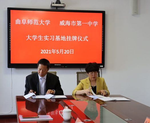 曲阜师大新闻中心讯 5月20日上午,曲阜师大化学与化工学院和威海一中举行了教育实习基地挂牌仪式,化学与化工学院党委书记赵琪、院长尤进茂、副院长冯媛媛,威海一中校长、党委书记张艳春、副书记邓思源、副校长梁永新、林罗军、王华玉、孙守国出席仪式。