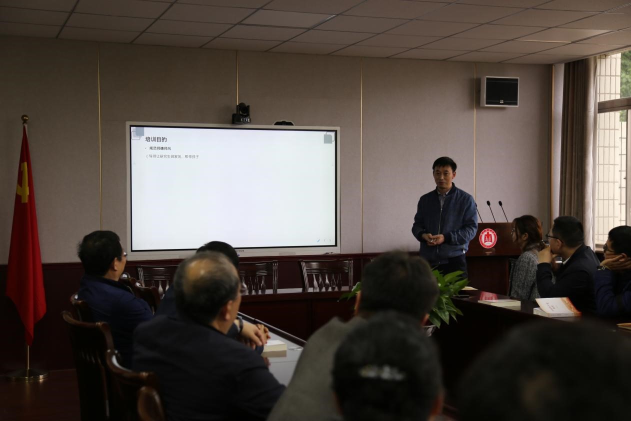 会上,郑召文传达了学校有关师德师风建设的会议精神,通报了学校近期师德师风工作有关状况,带领全体教职工集体学习了《教育部等六部门关于加强新时代高校教师队伍建设改革的指导意见》《新时代高校教师职业行为十项准则》《研究生导师指导行为准则》等文件,要求全体教师通过专题教育学习,充分认识师德师风建设的重要性、必要性,落实导师是研究生培养第一责任人的要求,坚持社会主义办学方向,坚持教书和育人相统一,坚持言传和身教相统一,坚持潜心问道和关注社会相统一,坚持学术自由和学术规范相统一,遵循研究生教育规律,创新研究生指导方式,潜心研究生培养,全过程、全方位育人,做研究生成长成才的指导者和引路人。